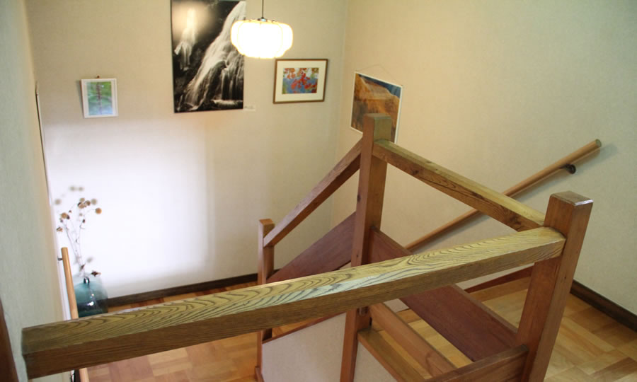 お客様からいただいた作品などが飾られた、安らぎの館内です。