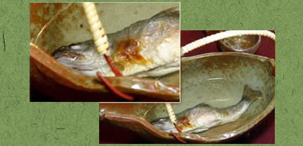 よく焼いた岩魚の上から熱燗をかけると・・・ 酒飲みにはたまらない味。 ぜひ一度お試しください。 ※別注文 岩魚の骨酒(3合) 2,200円(税込) その他、別注文に岩魚の塩焼き 880円(税込)があります。