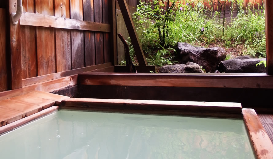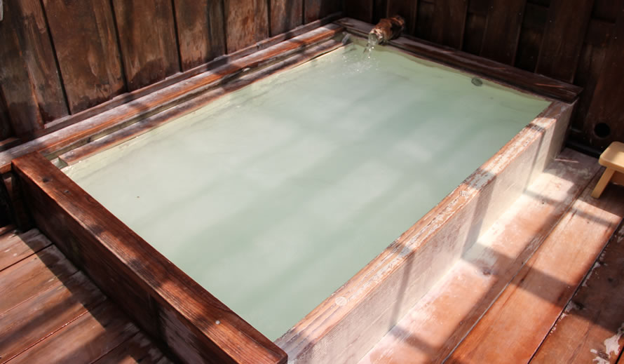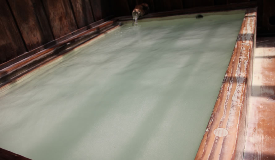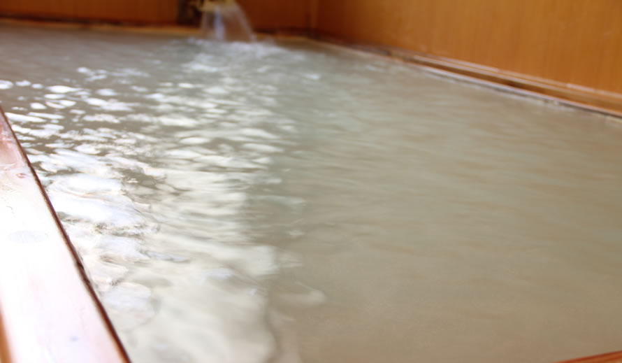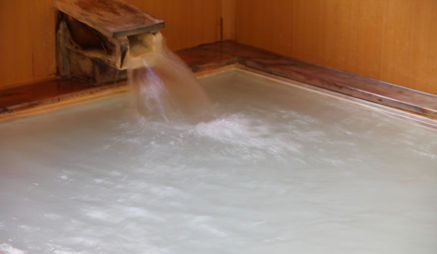 立ち込める硫黄の香り・・・源泉掛け流し、乳白色のまろやかな湯がやさしく肌を包み、体を芯から温めます。